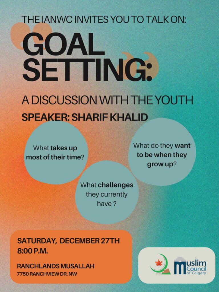 As’salaam o Alikum, Please join our discussion on topic of Goal Setting: A discussion with Youth on 27th of December after Isha.