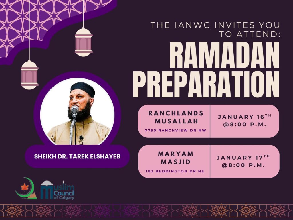 Alhamdulillah, we are nearing the holy month of Ramadan. To truly benefit from this blessed month, we must prepare for it in advance. Insha’Allah, IANWC will be hosting the following events for you.
